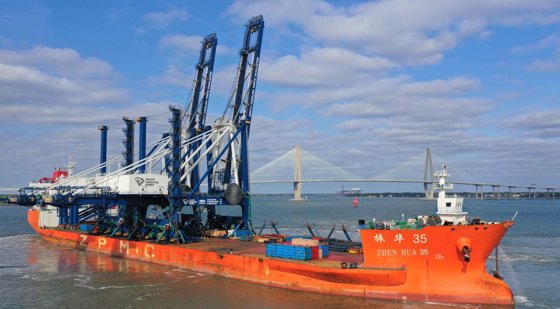 The ship-to-shore cranes were made by Shanghai-based ZPMC and will be fully assembled over the coming months in preparation for working vessels at Wando Welch Terminal early next year.